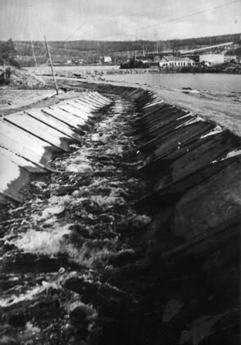 Обводной канал построен вроде где-то примерно вначале 70-х годов ( конечно по этому рукотворному сооружению рыба ( корышка ) уже не пошла в вверх по Ковдорке на нерест, а было время вода "бурлила" от нее)). В далеке на снимке виден первый хлебозавод ( одноэтажный ), и постройки ОРСа, а двухэтажный дом подалее - жилые "хоромы" возле первой железнодрожной станции г. Ковдора. На снимке видно и АБОФ еще не приступили строить..
